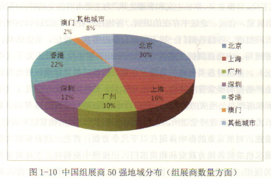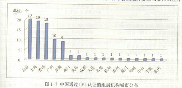 從中國目前的90家UFI會(huì)員機(jī)構(gòu)區(qū)域構(gòu)圖中可以看出(見圖1-7),排名前三的城市分別是北京(20家)、上海(19家)、香港(18家)、其次是廣州(10家)、深圳(9家)、澳門和義烏(各2家)、東莞、廈門、成都、鄭州、大連、蘇州、杭州、寧波、中山和重慶各有1家UFI成員組展單位,從一定成都上反映了我國各個(gè)會(huì)展經(jīng)濟(jì)帶區(qū)域?qū)嵙Φ牟町悺?/span>