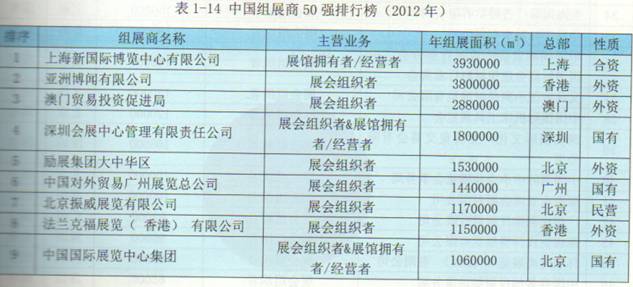 (數(shù)據(jù)來源:中外會(huì)展業(yè)動(dòng)態(tài)評(píng)估年度報(bào)告課題組,中國組展商實(shí)力報(bào)告,《中外會(huì)展業(yè)動(dòng)態(tài)評(píng)估年度報(bào)告(2012)》,P187-188)