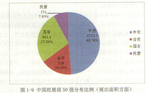 然而,從展出面積方面看,外資組展商以1551.5萬平方米的展出面積占據(jù)了48.76%的市場(chǎng)份額,遠(yuǎn)高于國有組展商27.06%(861.1萬平方米)的市場(chǎng)份額,而合資組展商在數(shù)量商雖然只占8%,但在展出面積上卻占了16.28%(518萬平方米),民營組展商卻只有7.89%(251萬平方米)的份額。課件,在中國展覽市場(chǎng)上,外資組展商已經(jīng)占據(jù)了”半壁江山“,我國民營主站上在組展規(guī)模上與外資組展商存在巨大的差距。