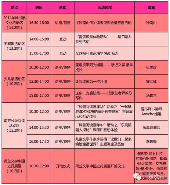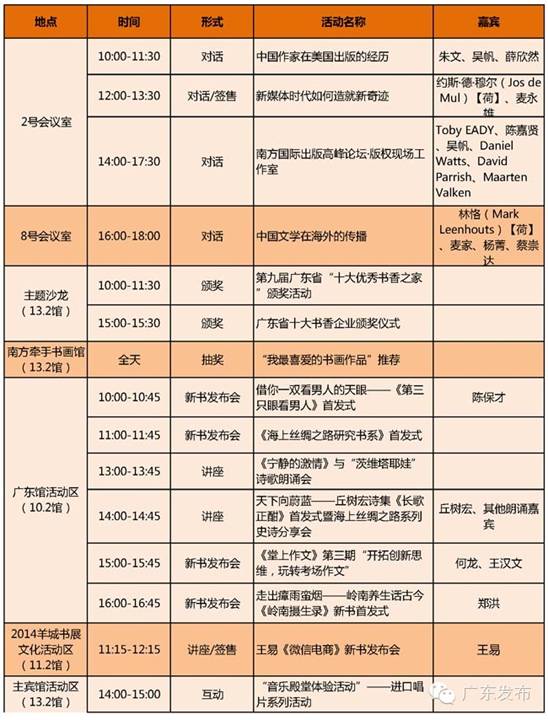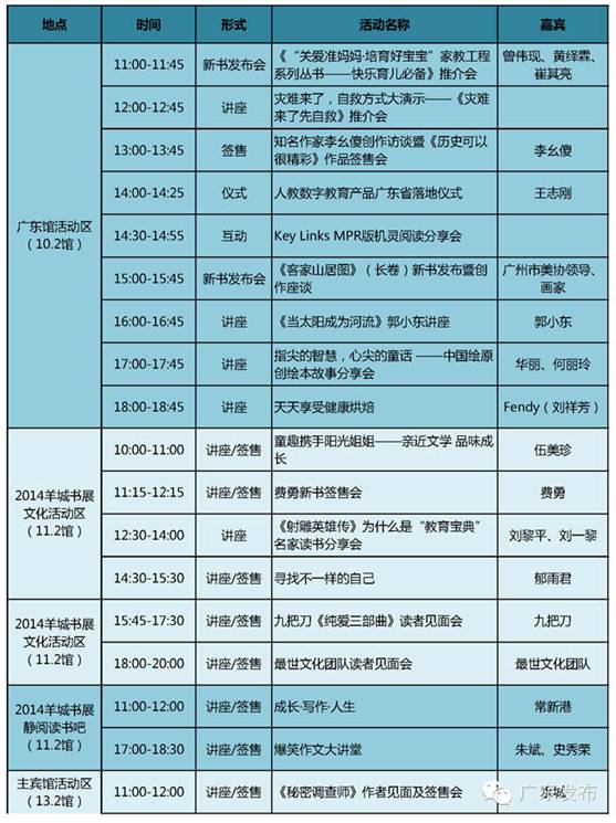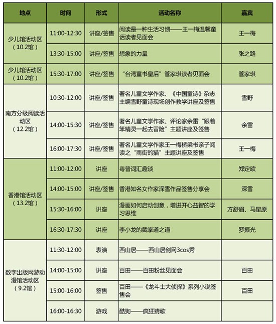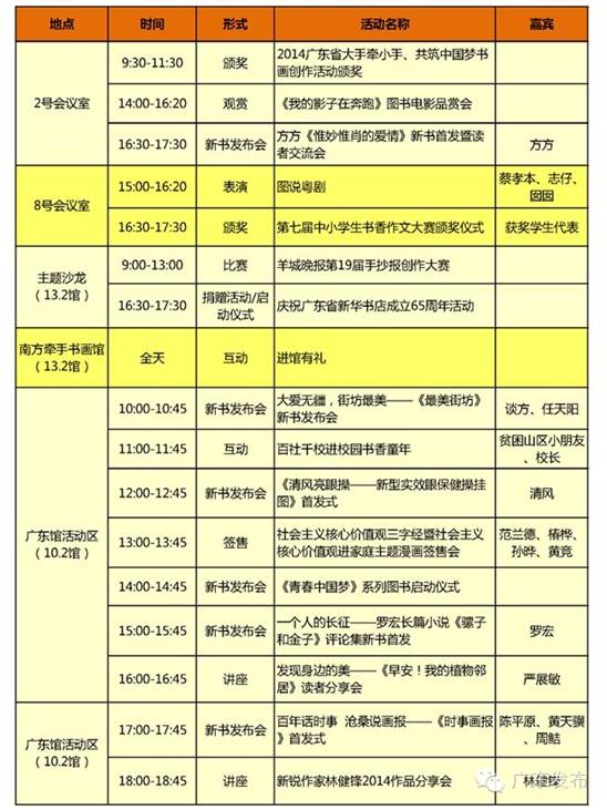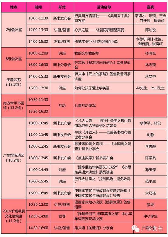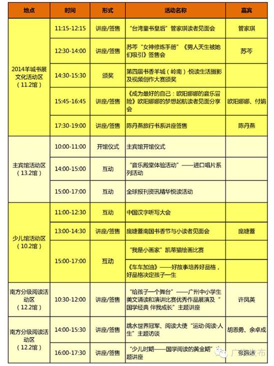 2014年廣州南國(guó)書香節(jié)7天活動(dòng)時(shí)間表
