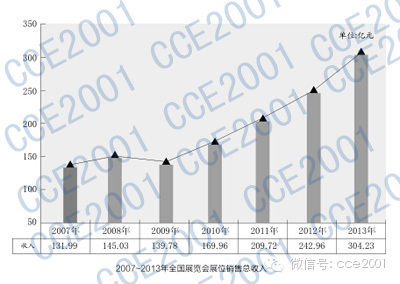 圖:(2007—2013年全國(guó)展覽會(huì)展位銷售總收入)