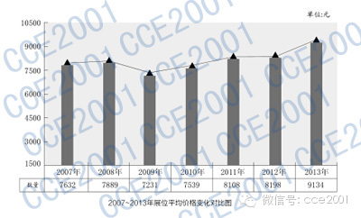 圖:2007—2013年展位平均價(jià)格變化對(duì)比圖