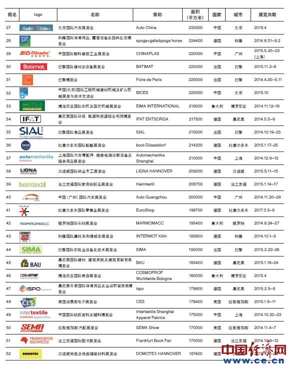 1. 以世界范圍內(nèi)的展覽為被選對(duì)象,以展覽地毯面積為主要排行數(shù)據(jù)。