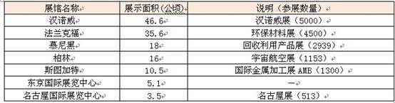 德國有22個國際展館,下表為德國幾個展館與日本兩大展館的對比數(shù)據(jù)。由此可見,號稱世界最大的漢諾威展館的展示面積是名古屋國際展覽中心展示面積的13倍多。而德國國內(nèi)相對較小的斯圖加特展館,其展示面積也是號稱日本展示面積最大的東京國際展覽中心的兩倍多。?