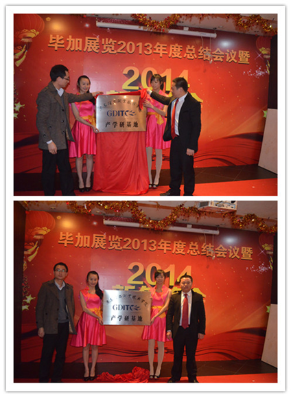在畢加展覽2013年度總結(jié)會(huì)議結(jié)束后,畢加展覽2014新年晚會(huì)正式開始。首先,進(jìn)行了畢加展覽成為廣東輕工職業(yè)技術(shù)學(xué)院產(chǎn)學(xué)研基地的揭牌儀式,這象征著畢加人才隊(duì)伍建設(shè)邁上了一個(gè)新的臺(tái)階。