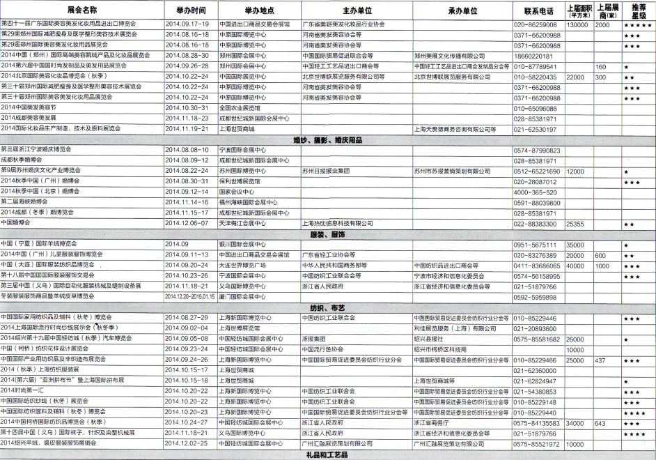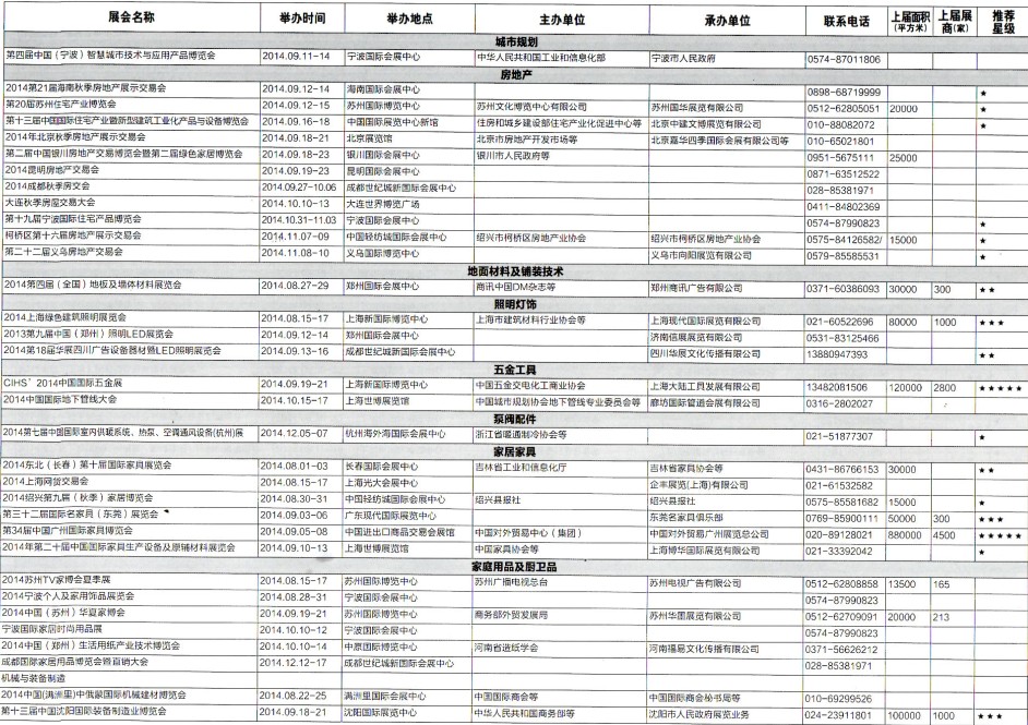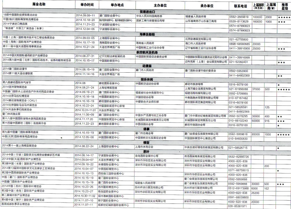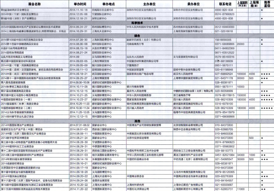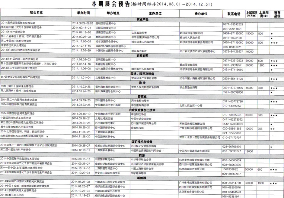 2014年8月至12月全國最全展覽會(huì)時(shí)間排期表