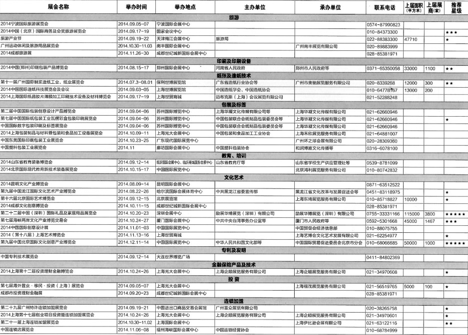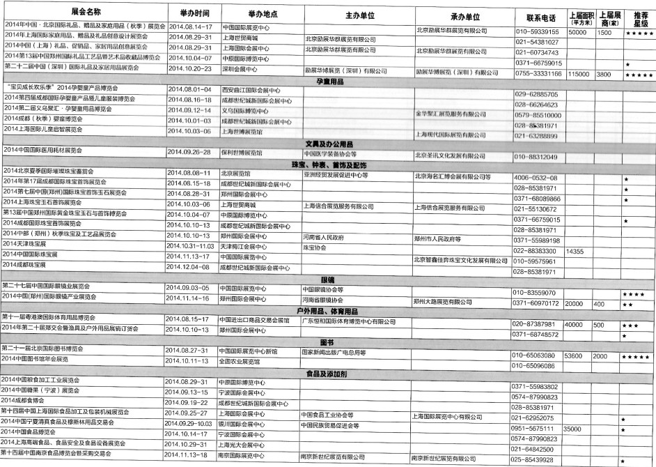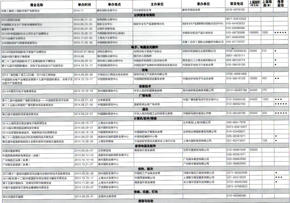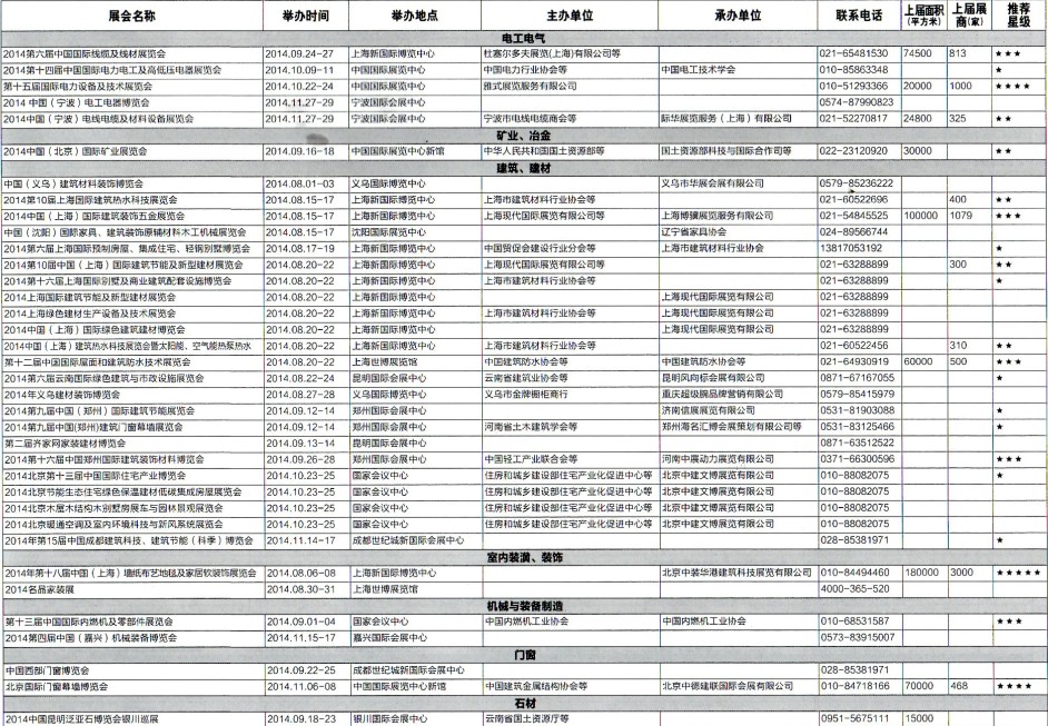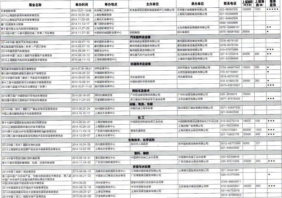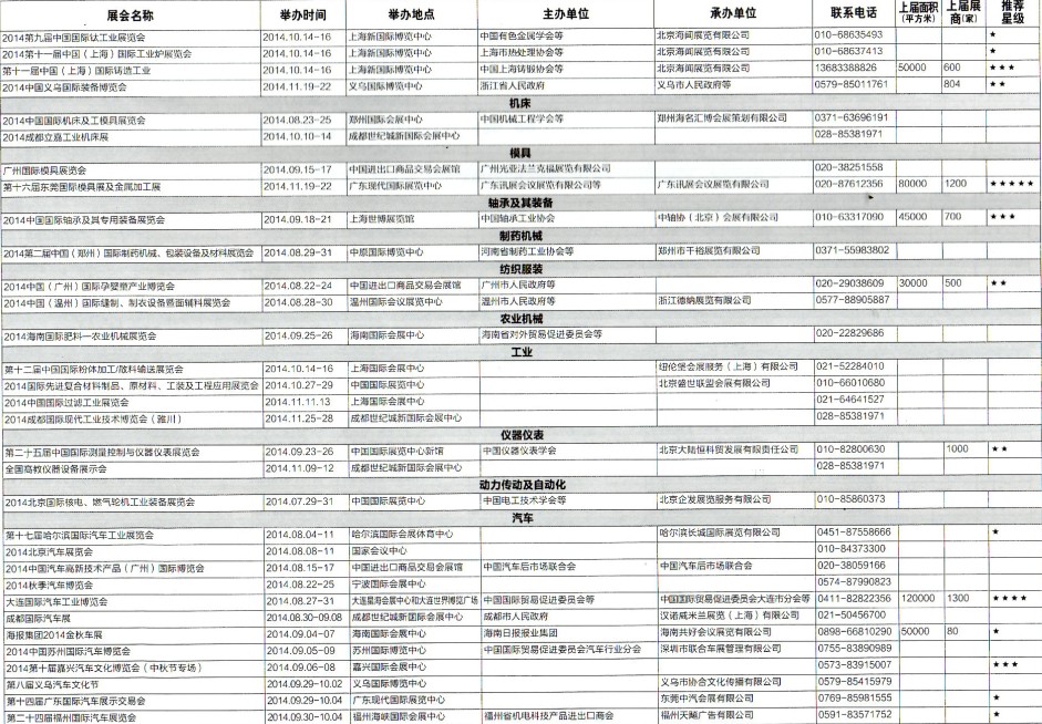2014年8月至12月全國最全展覽會(huì)時(shí)間排期表