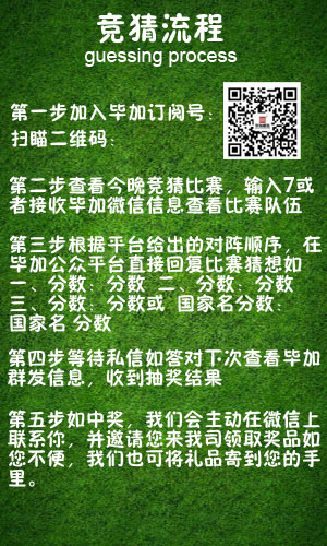 畢加展覽從2014年6月20起推出“我愛世界杯”的大型球迷競猜微信活動,只要您加入畢加訂閱號,成為我們的一員,您就能參與到這場球迷的熱潮中來,投出您的一票,給您的球星加油,為您的球隊(duì)吶喊,刷微信,贏大獎,您還等什么呢?