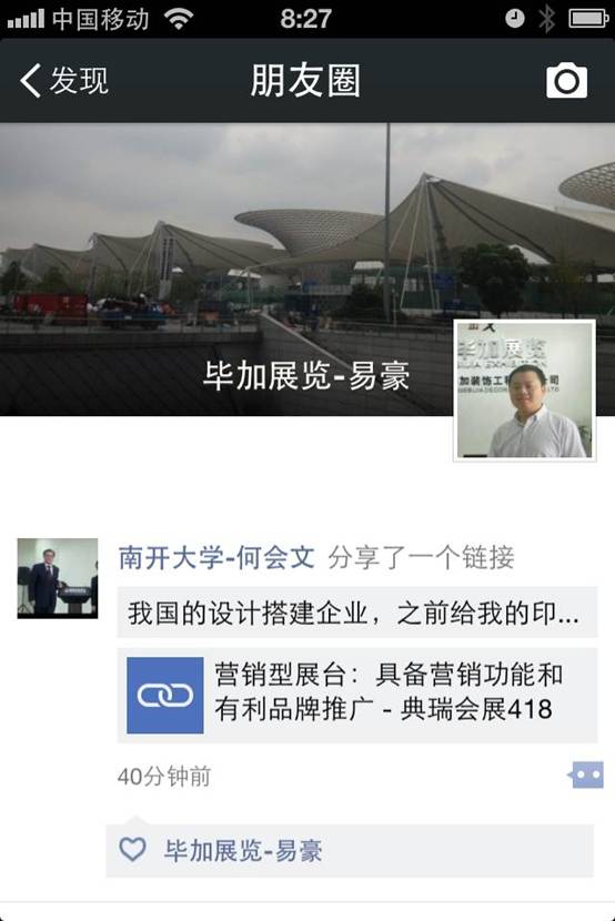 畢加展覽全國首創(chuàng)的營銷型展臺今日得到了南開大學何會文教授的肯定,何教授認為營銷型展臺能很好地幫助參展商實現(xiàn)銷售產(chǎn)品的目的,并代表了今后展臺設計的方向和趨勢。