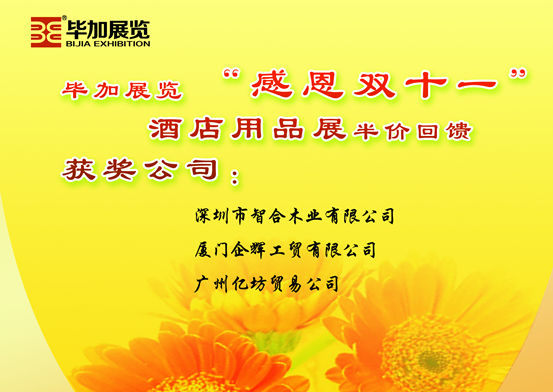 雙十一畢加酒店用品展半價回饋客戶活動中獎名單公布