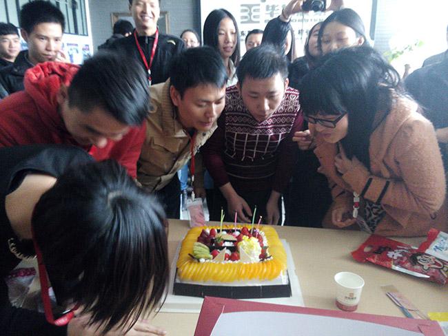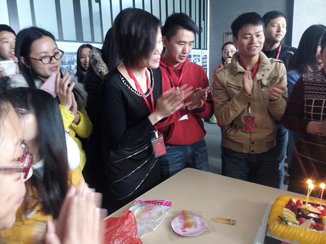 昨天,在畢加中庭全體同事為一群2015年1月生日的壽星舉行了生日派對(duì),生日會(huì)雖簡(jiǎn)單,但是同事們的祝福卻是多么的真誠(chéng),壽星們的愿望是多么的真切。隨后壽星們?cè)谟淇斓臍夥罩刑鹆恕白ュX舞”,不愧多才多藝。