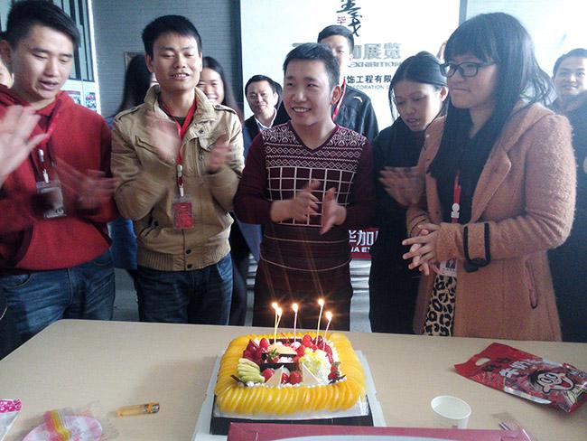 每月一次的生日會(huì)拉近的不僅僅是部門間同事的距離,更多的是增加公司凝聚力,為工作添加熱情,添加活力。以創(chuàng)新的設(shè)計(jì)理念設(shè)計(jì)好方案,以精確的數(shù)據(jù)做好施工圖,以零失誤的施工搭建展臺(tái)......相信畢加人在充滿激情的環(huán)境下能夠越做越好,將11年的畢加文化傳達(dá)到我們的服務(wù)上,為客戶在展會(huì)上營(yíng)造氣氛,創(chuàng)造銷售!