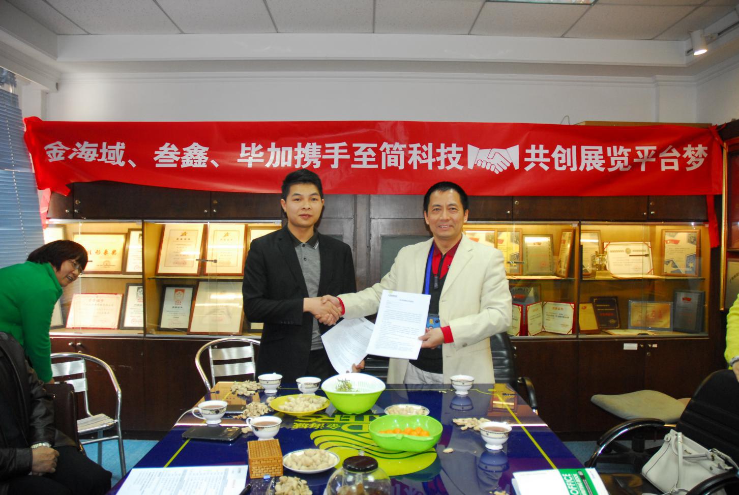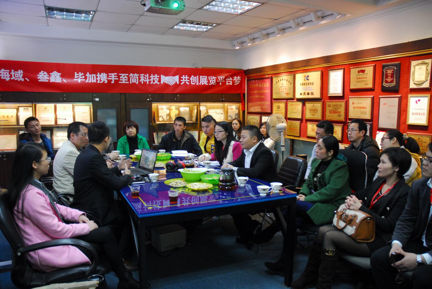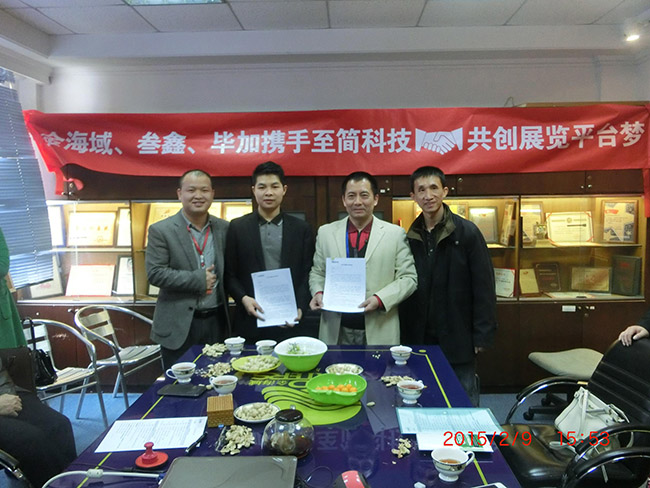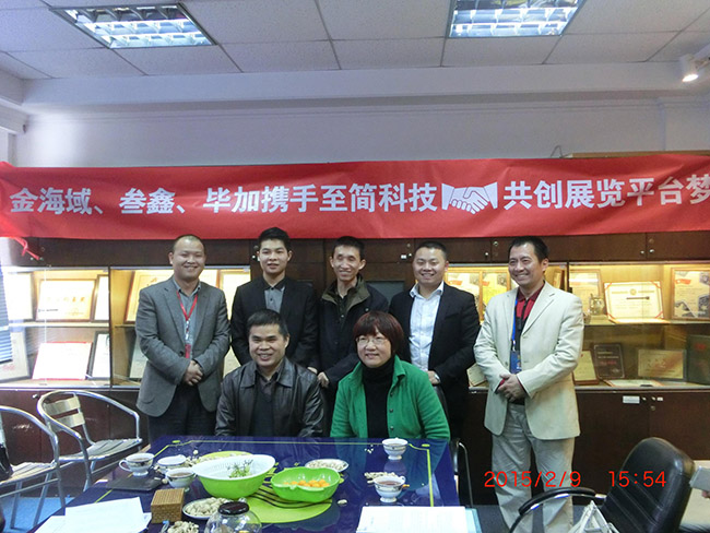 2015年2月9號(hào),注定是個(gè)歷史性的時(shí)刻,自94年成立至今有著20年的品牌歷史的金海域傳播有限公司與叁鑫、畢加為著一個(gè)共同的理想,在至簡(jiǎn)科技牽頭下,在廣東會(huì)展組展企業(yè)協(xié)會(huì)會(huì)長(zhǎng)劉松萍與廣州市經(jīng)濟(jì)貿(mào)易委員會(huì)會(huì)展中心主任李曉明及眾多企業(yè)高管的見證下,在金海域本部簽訂了合作協(xié)議。這意味著團(tuán)隊(duì)合作,在展覽這個(gè)新興行業(yè)將全面鋪開!標(biāo)志著四方建立了穩(wěn)固的戰(zhàn)略合作伙伴關(guān)系,為下一步的系統(tǒng)主導(dǎo),資源共享打下堅(jiān)實(shí)基礎(chǔ),邁出重要的一步!