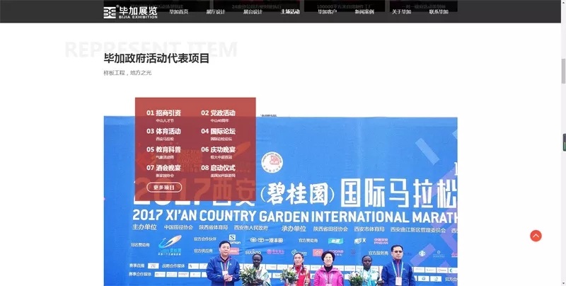 接著就是依次從展廳設(shè)計(jì)到展臺(tái)設(shè)計(jì)再到主場(chǎng)搭建,以提供客戶需求為己任,每個(gè)版塊分為五個(gè)詳情頁(yè)面,總共15個(gè)頁(yè)面,提供給客戶進(jìn)行參考,細(xì)閱。每個(gè)詳情頁(yè)面都有明確展示所需展會(huì)案例,讓整個(gè)網(wǎng)站具有國(guó)際化。