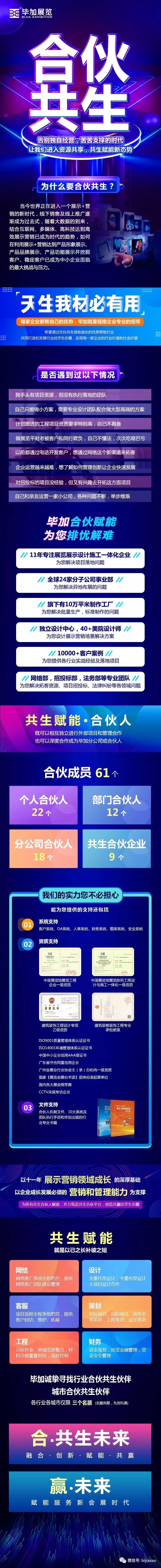 畢加注于展館展廳設(shè)計(jì)施工、主場(chǎng)策劃執(zhí)行、展臺(tái)設(shè)計(jì)搭建專業(yè)服務(wù),是一家展覽營銷設(shè)計(jì)施工一體化的專業(yè)服務(wù)企業(yè)。畢加致力于打造中合伙人平臺(tái)。私人定制展覽事業(yè)新舞臺(tái)。推動(dòng)中國展覽行業(yè)的發(fā)展,制定行業(yè)規(guī)范及標(biāo)準(zhǔn),努力成為新一代優(yōu)秀民營企業(yè)的典范,力爭(zhēng)做中國展覽行業(yè)的領(lǐng)跑者。