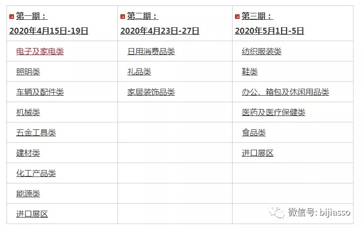 2020年第127屆中國(guó)進(jìn)出口商品交易會(huì)第一期舉辦類型包括“電子及家電類”、“照明類”、“車(chē)輛及配件類”、“機(jī)械類”、“五金工具類”、“建材類”、“化工產(chǎn)品類”、“能源類”。