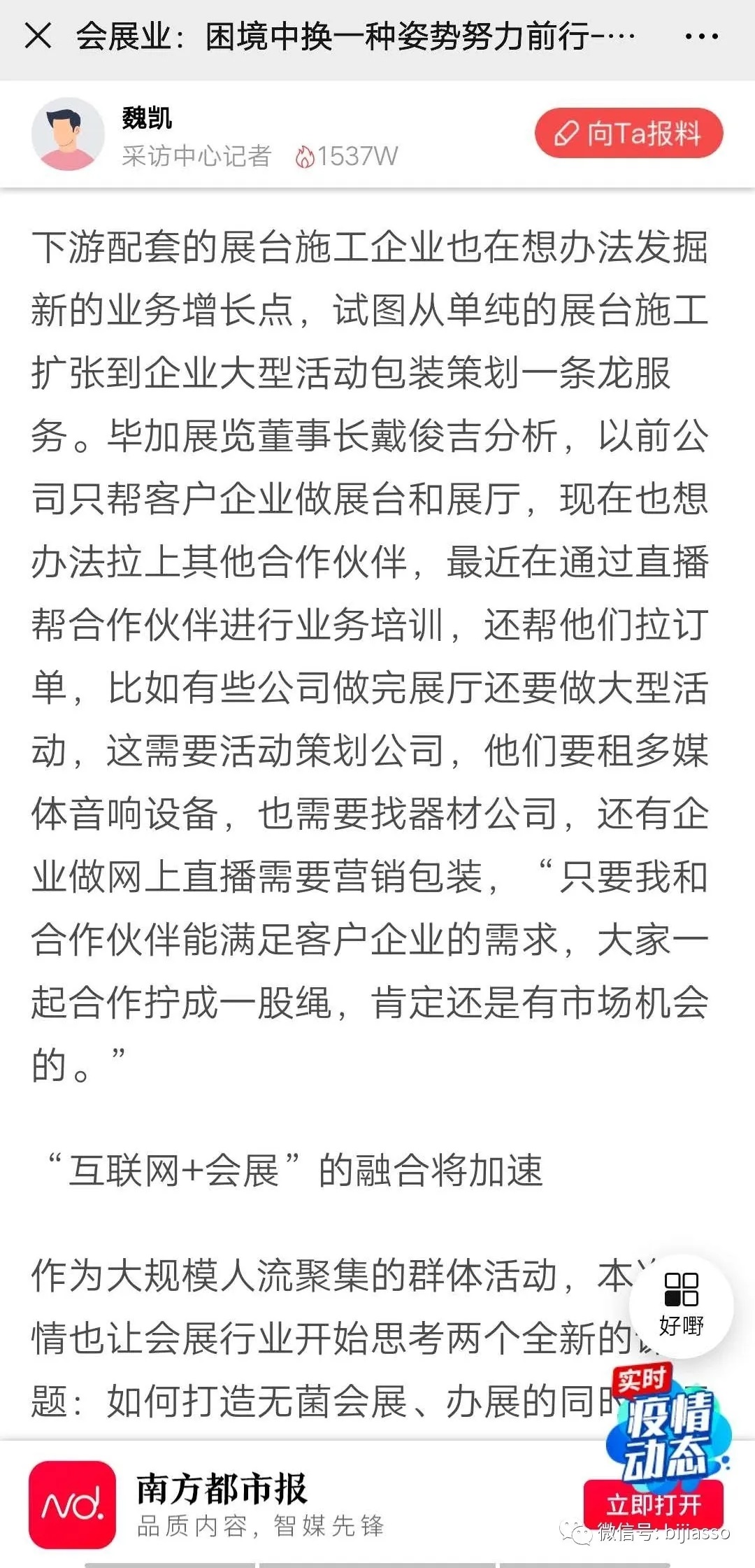 會員生活丨畢加展覽董事長接受南方都市報采訪,講解疫期間展覽行業(yè)發(fā)展