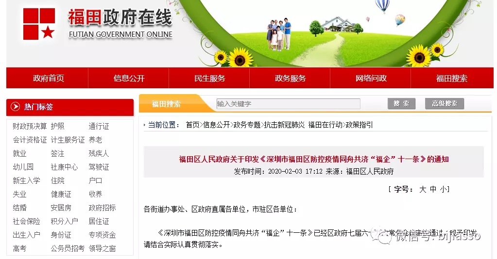 《深圳市福田區(qū)防控疫情同舟共濟(jì)“福企”十一條》