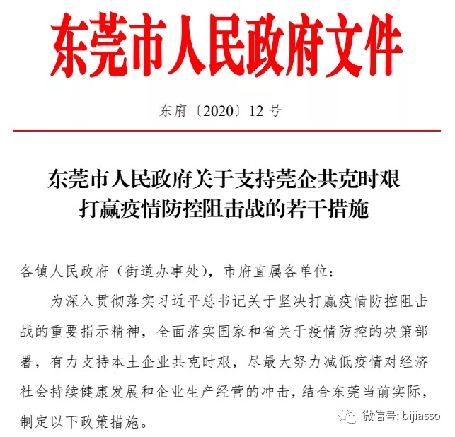 東莞市人民政府關(guān)于支持莞企共克時(shí)艱 打贏疫情防控阻擊戰(zhàn)的若干措施
