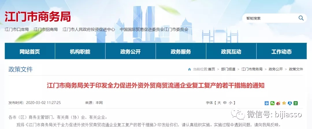 江門市商務(wù)局關(guān)于全力促進(jìn)外資外貿(mào)商貿(mào)流通企業(yè)復(fù)工復(fù)產(chǎn)的若干措施