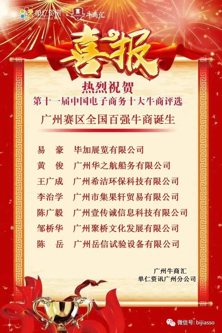 畢加展覽易豪成功進入第十一屆中國電子商務全國百強牛商