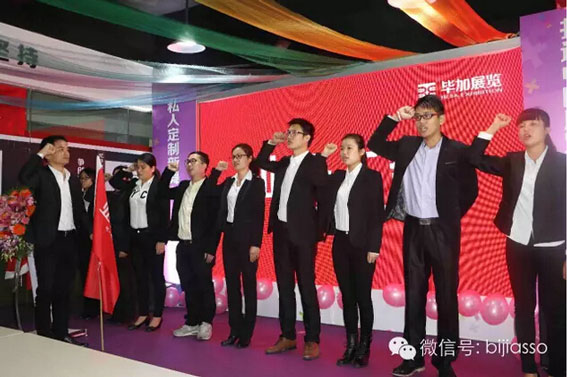 隨后又一位重量級人物——易豪,易副總經(jīng)理上臺進(jìn)行2015年總結(jié)及2016年計劃。畢加展覽一路走來可謂風(fēng)雨交加,一句耳熟能詳?shù)脑挻蠹掖蟾哦贾?ldquo;不經(jīng)歷風(fēng)雨,怎能見彩虹”,現(xiàn)今的畢加展覽如此強(qiáng)大少不了多年來磨練;少不了各位高管的細(xì)心經(jīng)營與教導(dǎo);少不了默默為畢加付出的同事。。。。。。