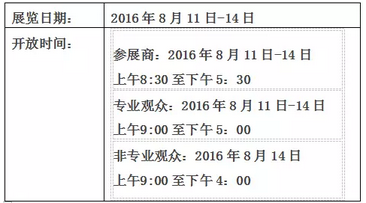展覽時間:2016年8月11日到8月14日