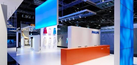 在實際應(yīng)用中,60cm以下的區(qū)域常作為倉儲空間使用,而190cm以上的區(qū)域有多種用途。如導引系統(tǒng)的標示、廣告的布置、企業(yè)形象的宣傳等用途。但其高度一般不宜超過250cm。這一限定因近年來展位大型化而被突破。因為190cm以上的區(qū)域難以吸引觀眾的近距離目光,但能引起觀眾遠距離的注意。這樣,人們在參觀時不致抬頭或彎腰下蹲。人的頸脊、腰椎處于正常的活動范圍之內(nèi),不會感到吃力和疲勞。