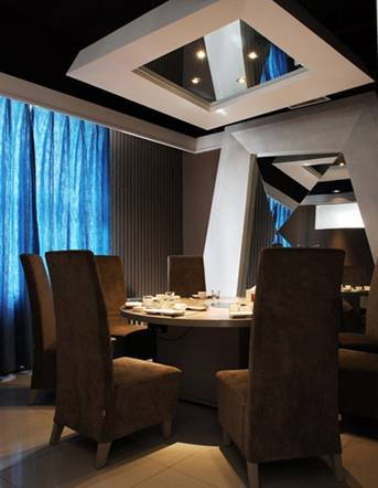 在對面的利用中,使用條形或整幅的鏡面玻璃形成虛中見實的視錯覺效果,是展示設計較為常用的一種視錯覺處理辦法。在陳列布置上巧妙的利用鏡子將有助于制造假象,在視覺上擴大空間范圍。此外鏡子還能產(chǎn)生一種虛幻的對稱效果。